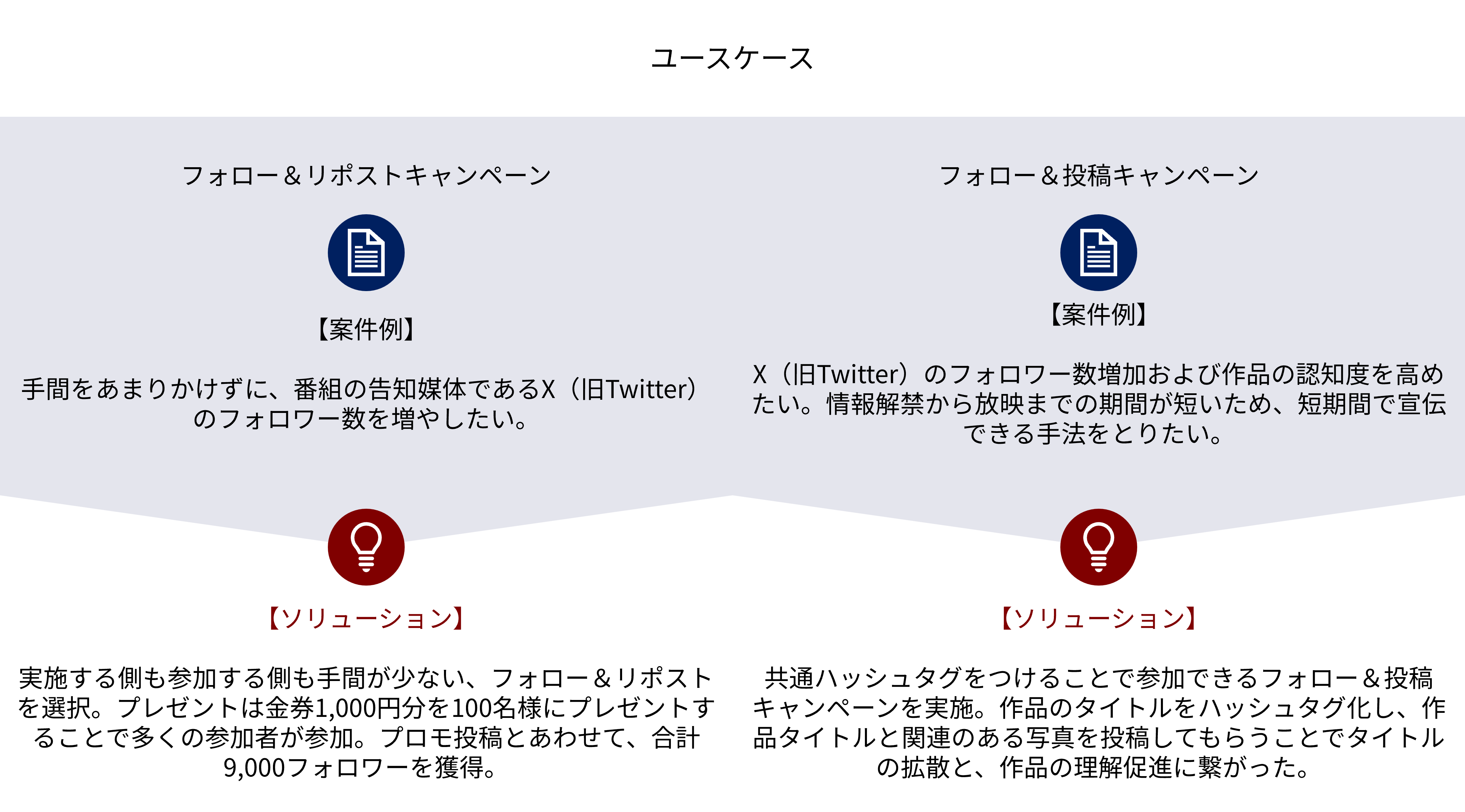 フォロワーを増加させたい、ユーザーの声を聞きたい、ファンを増やしたい、など目的に応じたキャンペーンをご提供します。